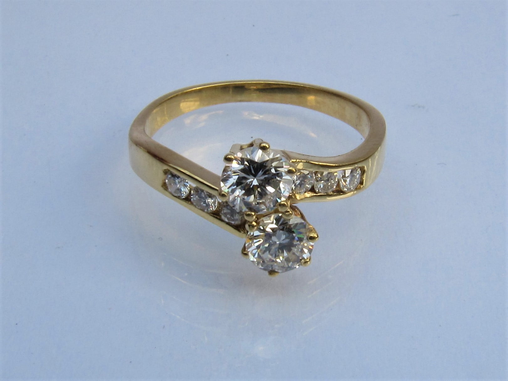 Elegante 18 kt. geel gouden ring. Bezet met 1,01ct. briljant slijpsel natuurlijke diamant. FG-VS. Zeer heldere en witte stenen.